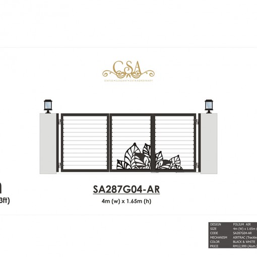 The latest innovation from CSA! Made from fully powder coated of sturdy aluminium extrusion combining strength and beauty. Inspired by the impending mood in the break of dawn, this piece also represents the ambitious innovation from CSA team. This new technology has overcome the many common seen problems including exhausted or unbalanced roller moving off track due to wear and tear; the trouble of planting and hacking floor as well as the limitation in having an even floor in front of the house. CSA creatively embed the guiding track mechanism into the body of gate and it works seamlessly with the new CSA Ekogate AIR™ Series.